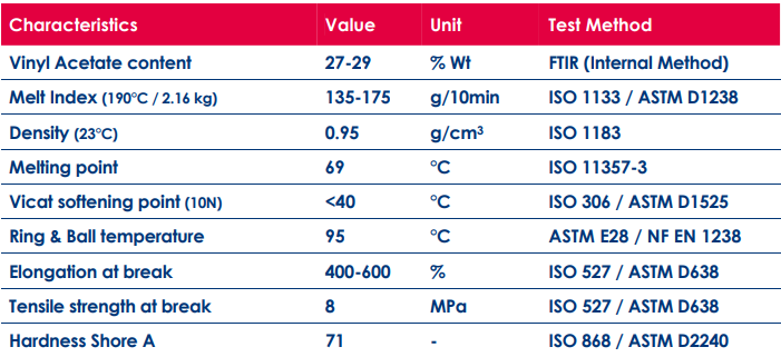 EVATANE® 28-150 is a random copolymer of Ethylene and Vinyl Acetate made by high-pressure radicalar polymerization process.