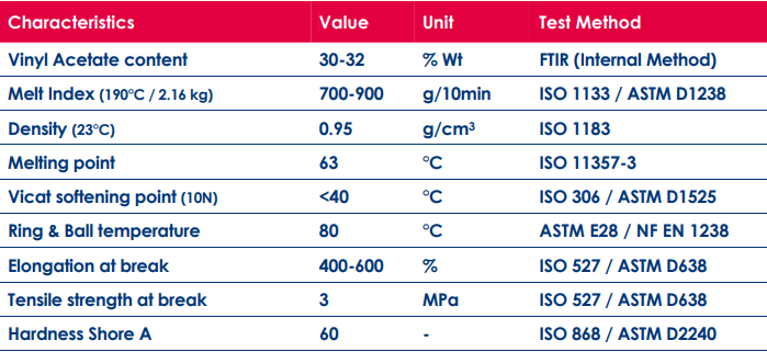 EVATANE® 28-800 is a random copolymer of Ethylene and Vinyl Acetate made by high-pressure radicalar polymerization process.