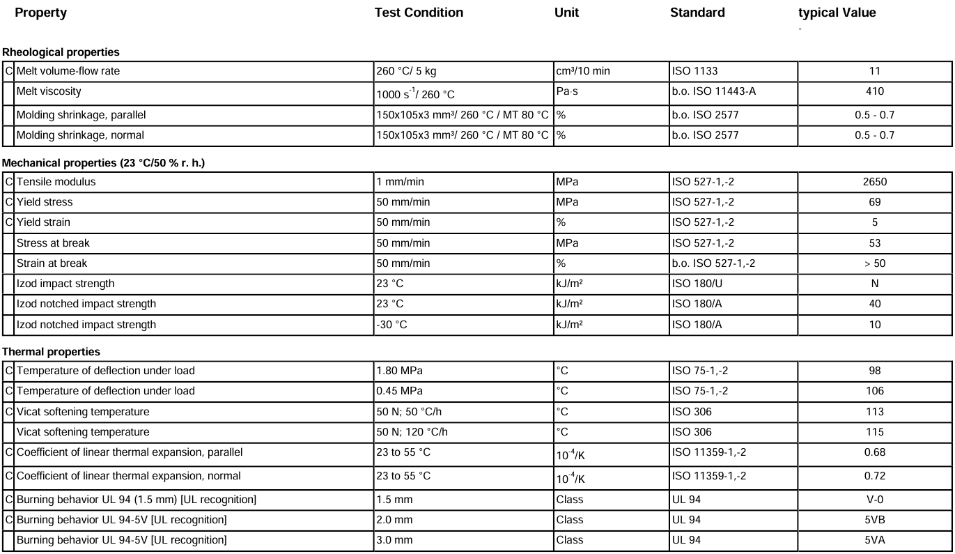 Polycarbonate (PC) is a rigid thermoplastic that provides clarity, toughness, and good heat resistance. By itself, polycarbonate has reasonable resistance to burning, and that resistance increases by adding flame retardants that are typically halogen-containing. Acrylonitrile-butadiene-styrene is a well know rigid thermoplastic that offers both moderate impact and moderate chemical resistance. The heat resistance of acrylonitrile-butadiene-styrene is lower than that of polycarbonate. Like polycarbonate, halogen containing additives are used to increase resistance to burning.